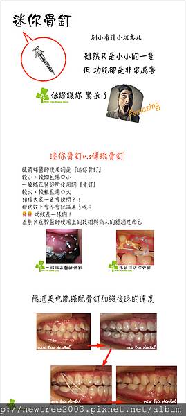 暴牙的病患通常是需要拔掉牙齒製造空間才可以讓牙齒能夠有往後退或者往前拉,然而醫師會裝上骨釘利用它的力量讓牙齒進行拉橡皮筋的動作,使牙齒排列整齊。