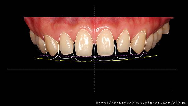 大家所看到的白線就是由醫師畫出來的牙齒形態設計,